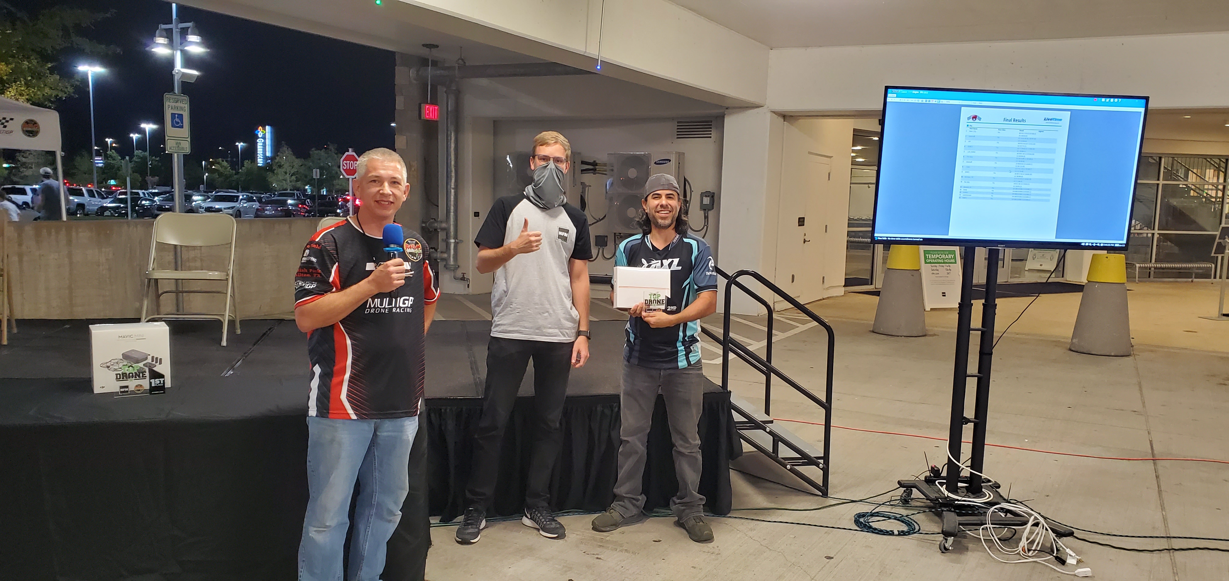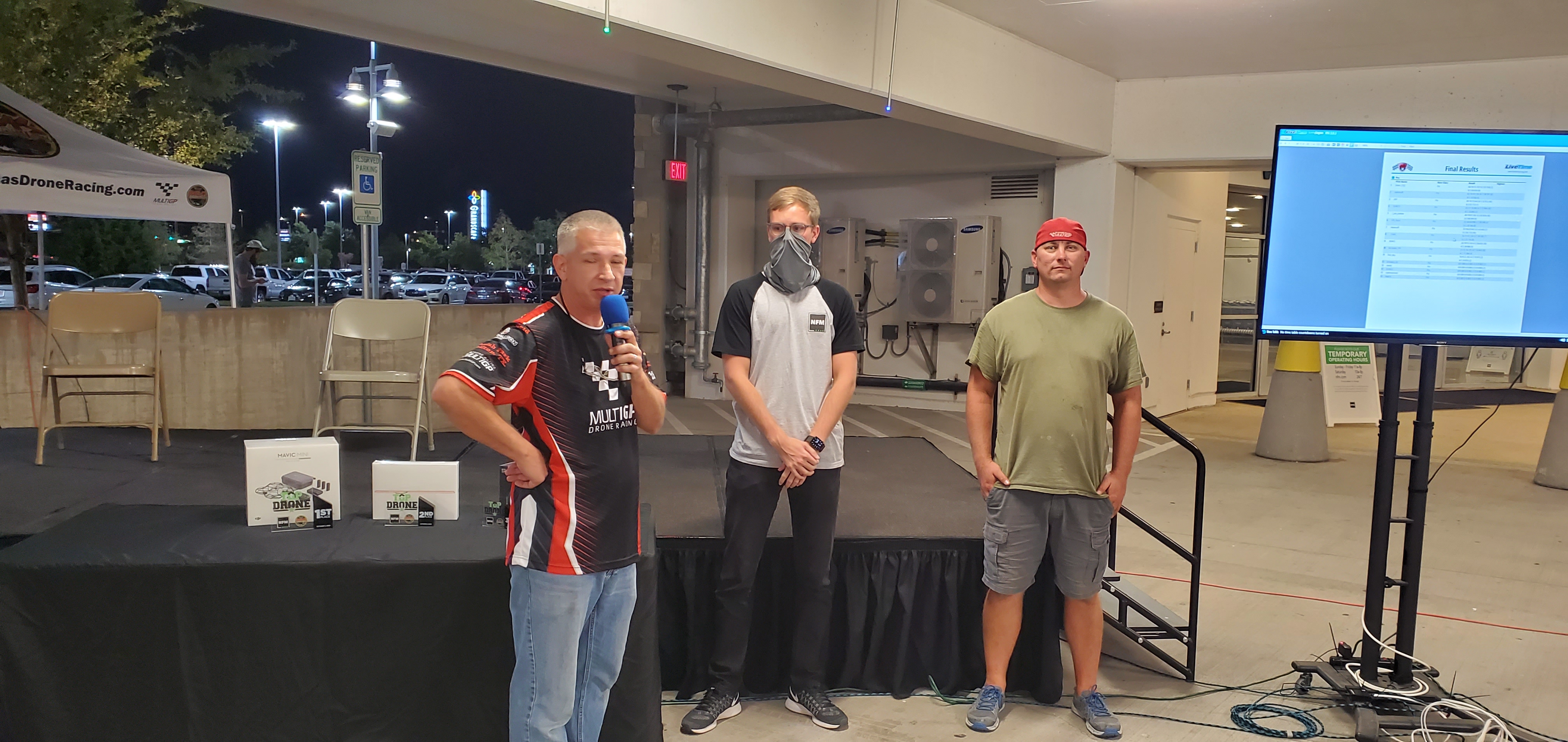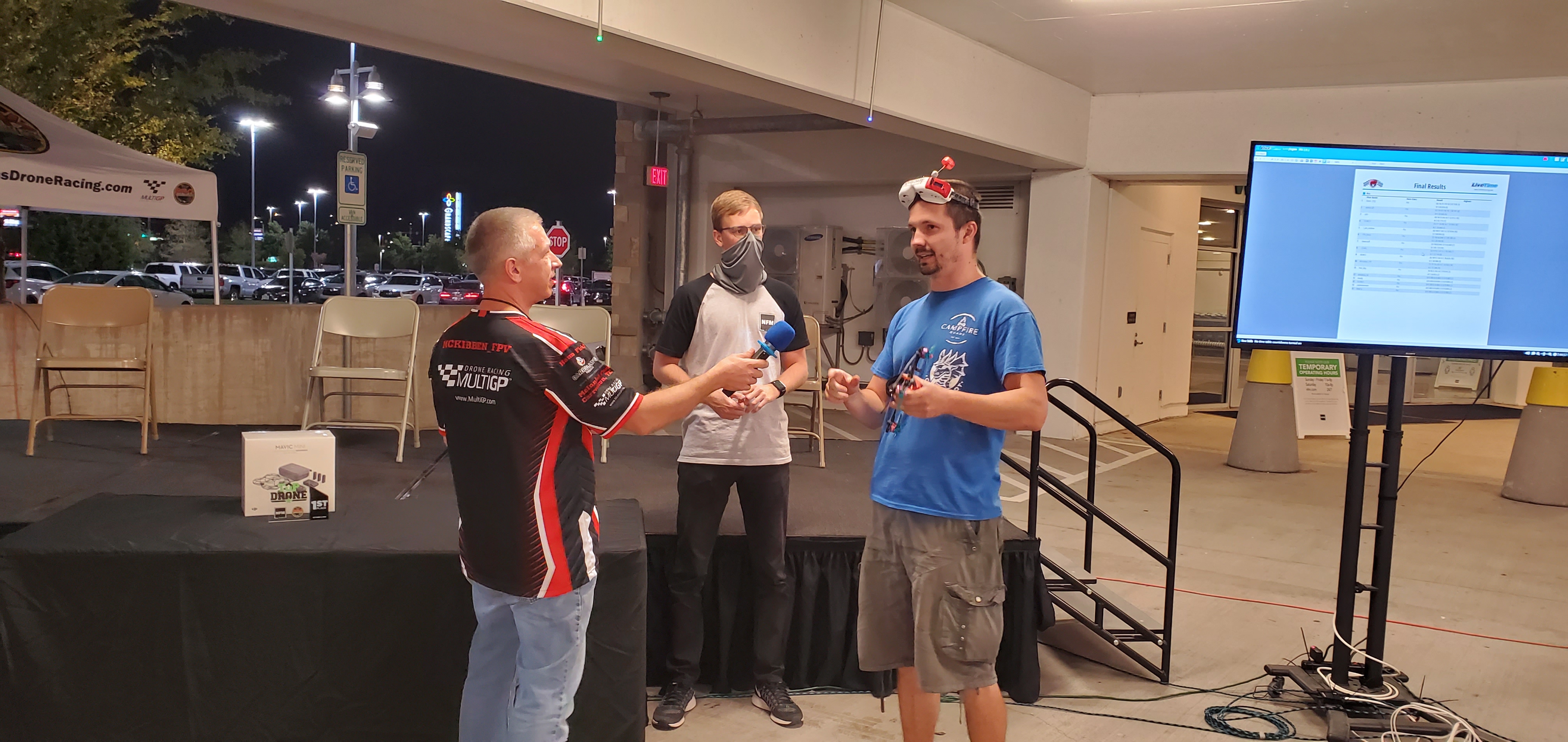 We had a great turnout and race in the Nebraska Furniture Mart parking garage. Many first time spectators experienced the excitement of drone racing while the pilots did their best to avoid hitting the unforgiving surroundings. In the end it was Ivan Efimov taking home the Gold with Leo Barbera with Silver and Kevin Hannush bringing home the Bronze. Thanks for coming out to watch us and look forward to seeing you at the next race.