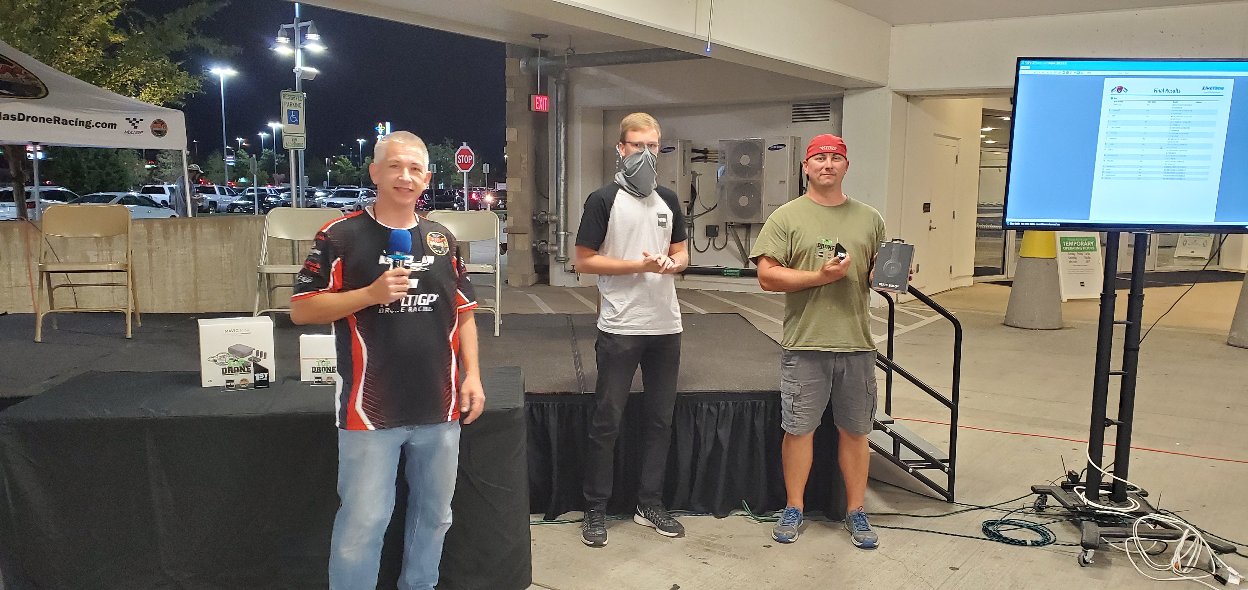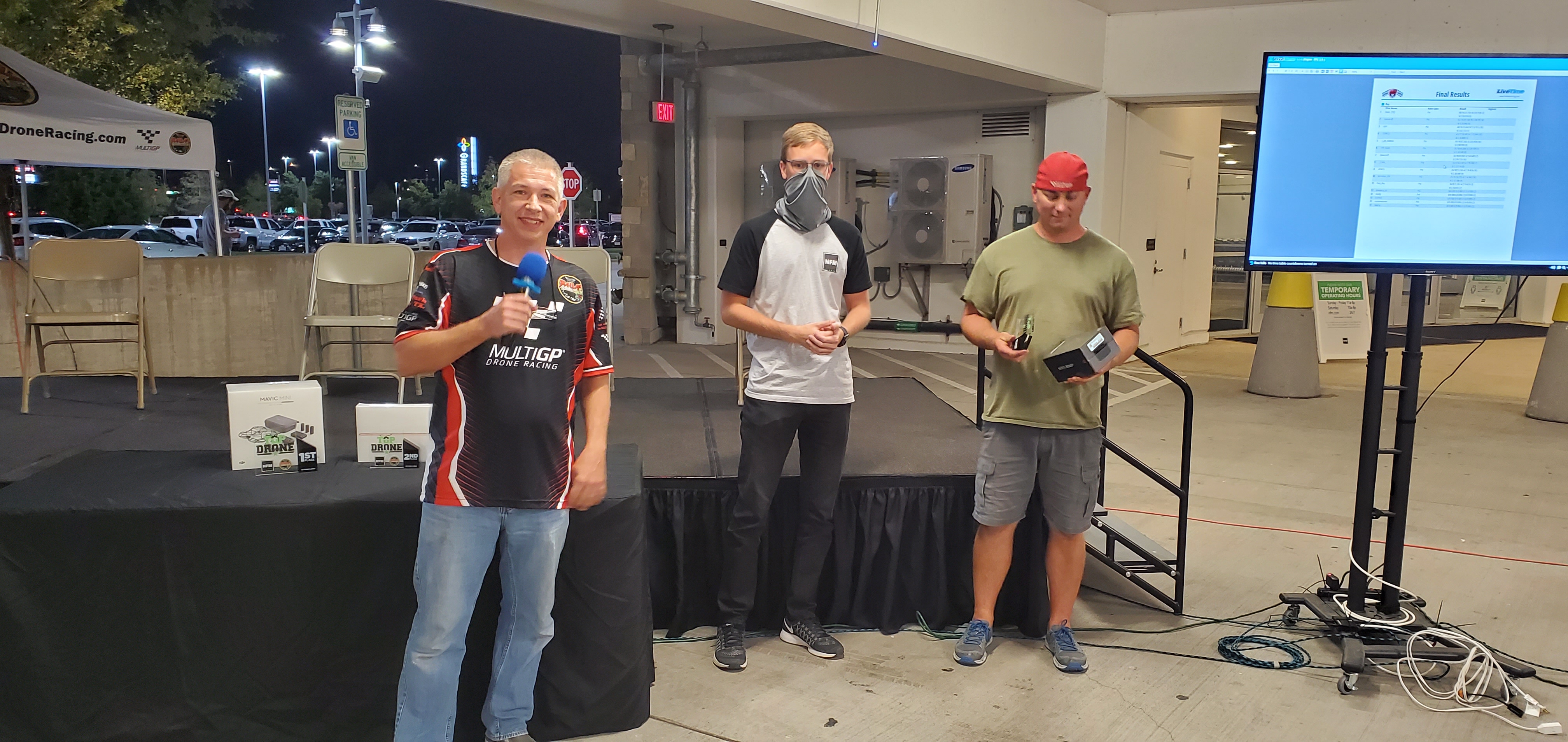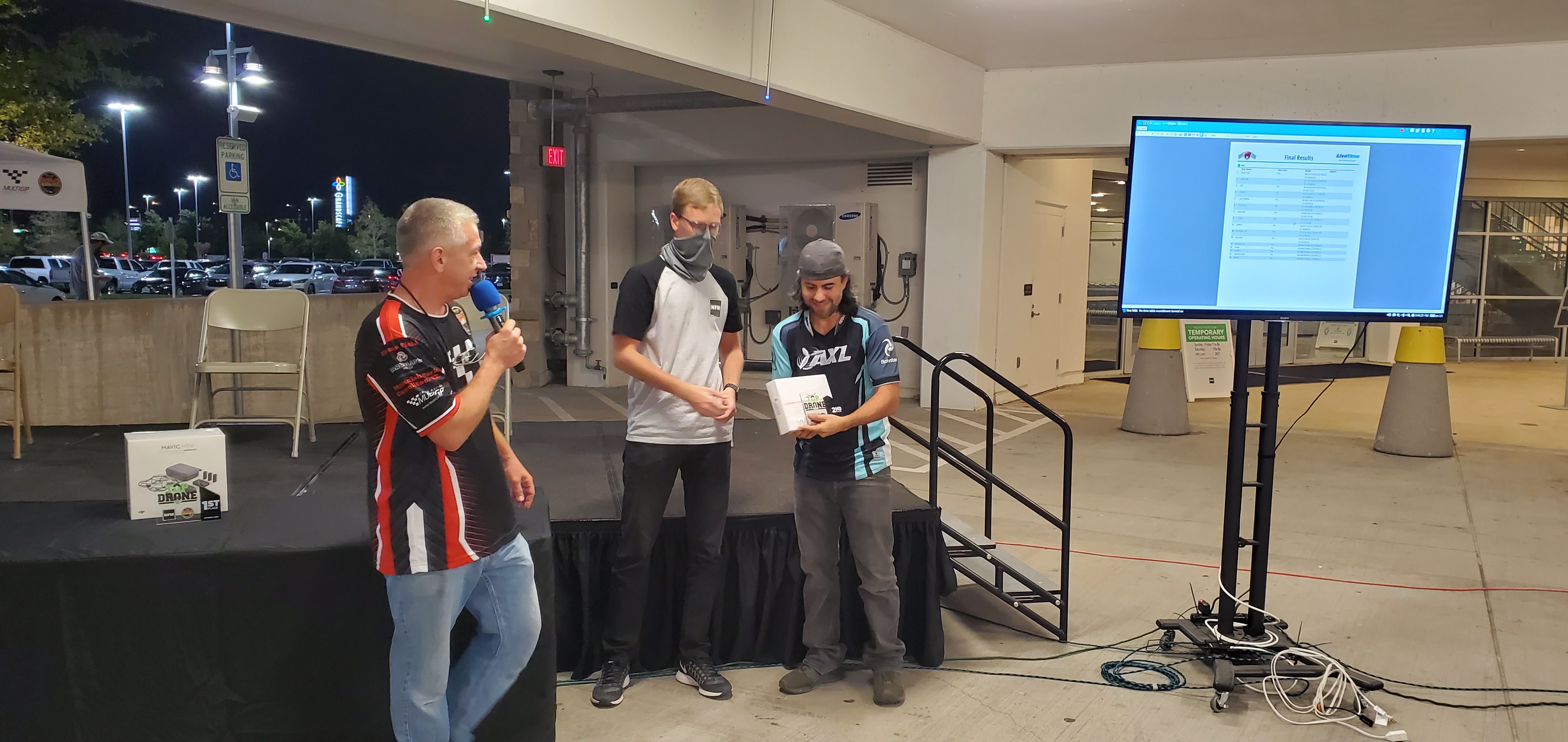 We had a great turnout and race in the Nebraska Furniture Mart parking garage. Many first time spectators experienced the excitement of drone racing while the pilots did their best to avoid hitting the unforgiving surroundings. In the end it was Ivan Efimov taking home the Gold with Leo Barbera with Silver and Kevin Hannush bringing home the Bronze. Thanks for coming out to watch us and look forward to seeing you at the next race.
